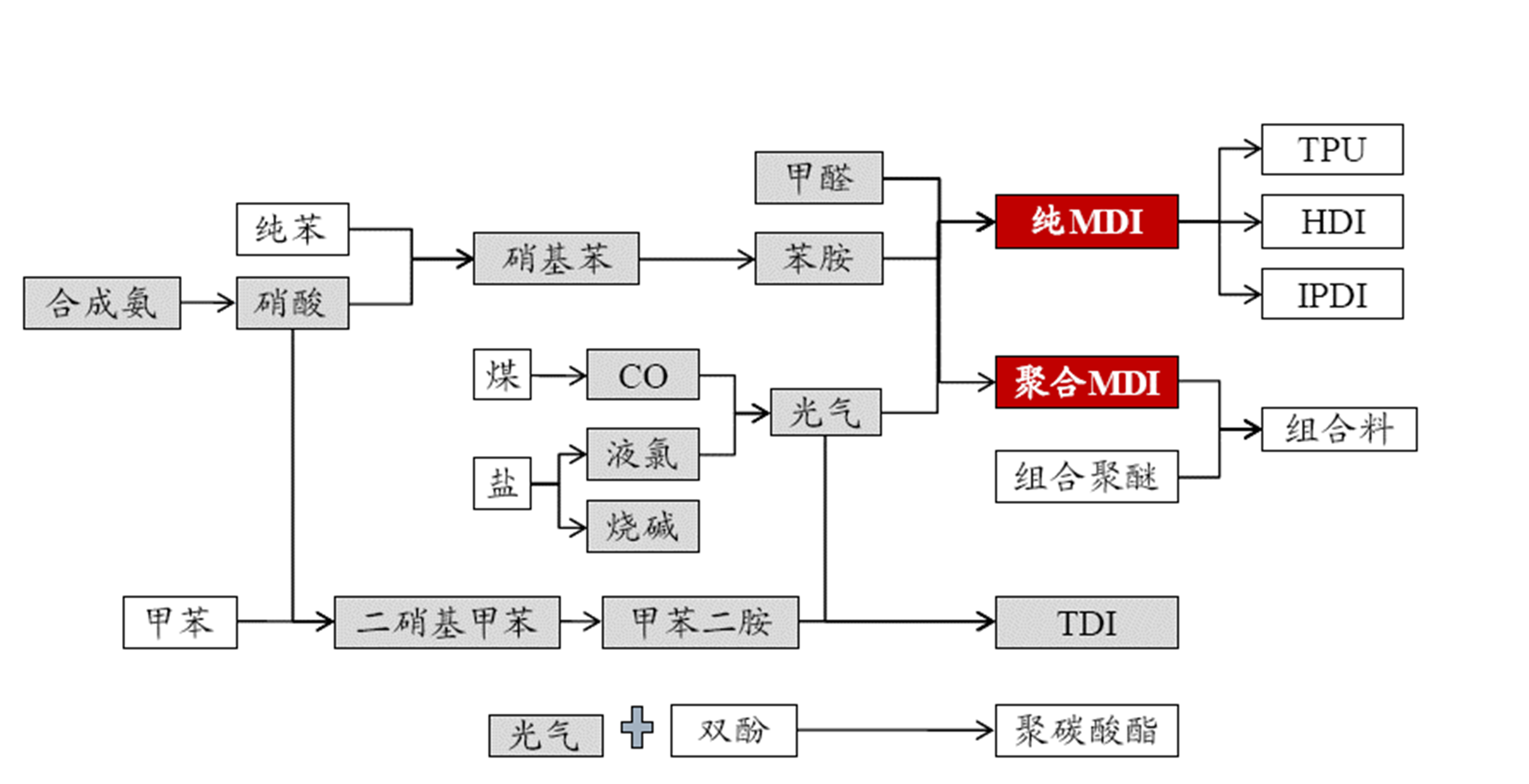 同时,行业内相关企业也投入了大量人力物力研发六亚甲基二异氰酸酯(HDI)、异佛二酮二异氰酸酯(IPDI)、二环已基亚甲基二异氰酸酯(H12MDI)等高性能、高附加值特种异氰酸酯产品。