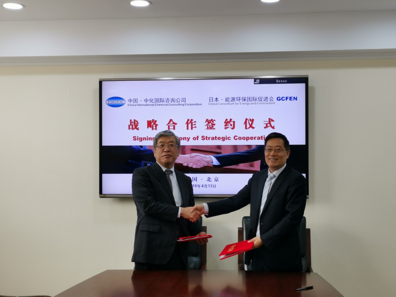 2019年4月13日,中化国际咨询公司与日本能源环保国际促进会在北京签署了战略合作框架协议。双方本着“优势互补、互利互惠、真诚合作、共同发展”的原则建立长期合作关系,充分发挥各自的科技、人才智库平台和产业优势,根据双方需求和实际情况开展多形式、多层次和全方位的战略合作,以期实现优势互补,促进中日清洁能源和环保行业可持续发展。