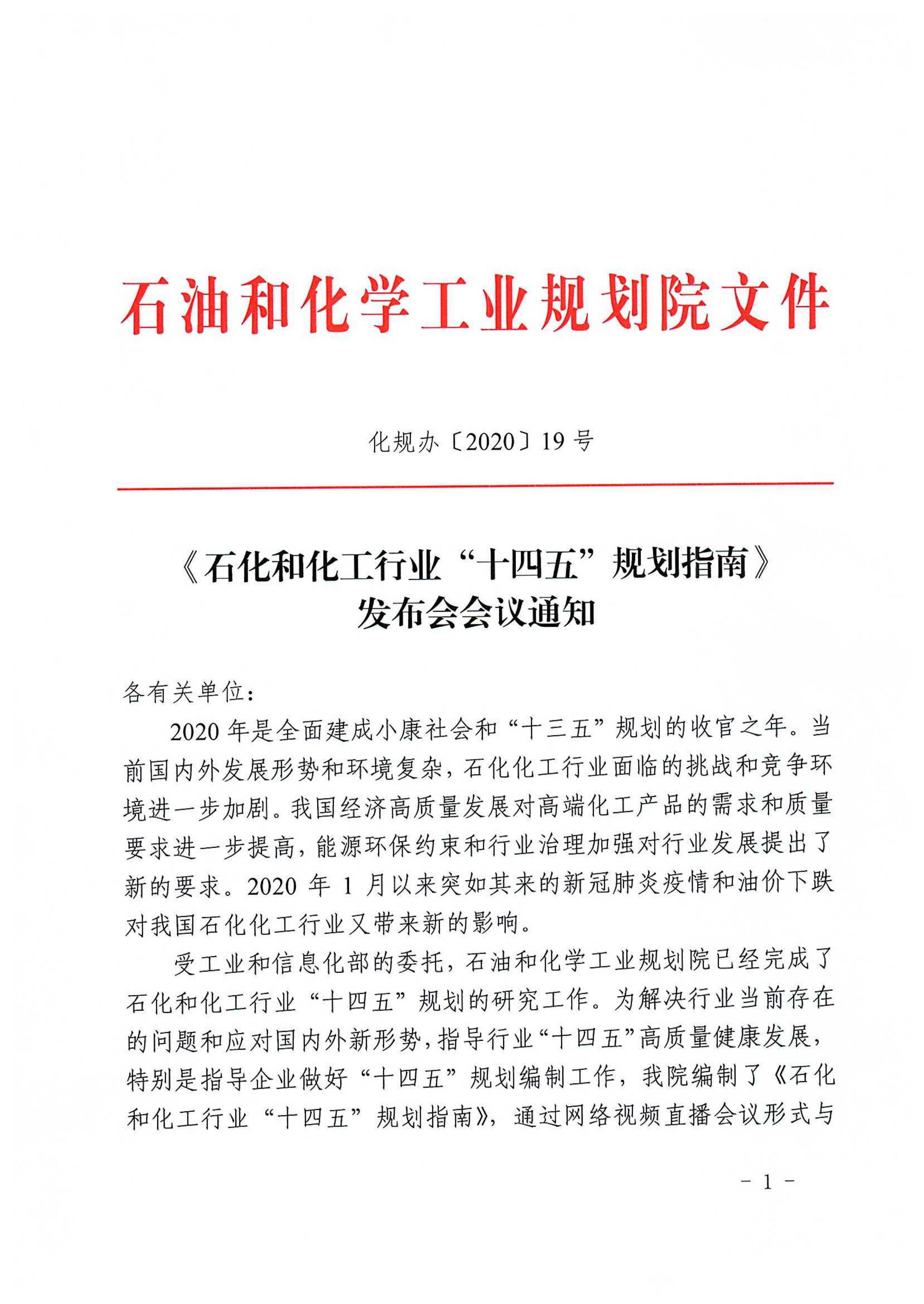> 规划院首场网络视频直播《石化和化工行业“十四五”规划指南》发布会即将开始!