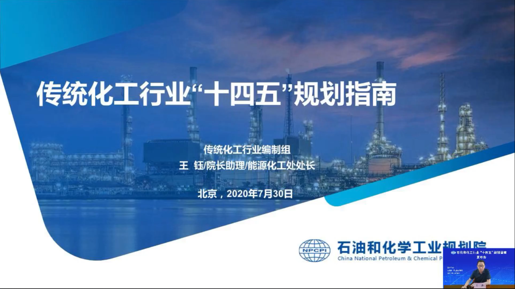 为解决石化化工行业当前存在的问题和应对国内外新形势,指导行业“十四五”高质量健康发展,特别是指导企业做好“十四五”规划编制工作,澳门新葡京 编制了《石化和化工行业“十四五”规划指南》(以下简称“规划指南”)。2020年7月30日上午,澳门新葡京 通过在线直播的形式,对《石化和化工行业“十四五”规划指南》进行了发布,会议取得了圆满成功,同时在线收看人数超5万人。发布会分一个主旨报告和五个专题报告对《规划指南》进行了详细介绍,会议由李志坚副院长和郑宝山副院长主持。