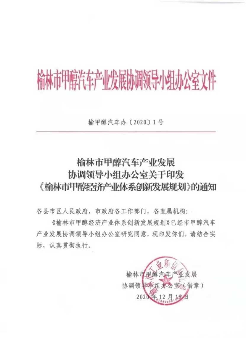 12月15日,澳门新葡京联合榆林碳氢研究院股份有限公司编制的《榆林市甲醇经济产业体系创新发展规划(2020-2035年)》(以下简称《规划》)由榆林市甲醇汽车产业发展协调领导小组印发。至此,榆林市加快创新驱动、打造现代化甲醇经济产业体系的宏伟蓝图正式拉开序幕。