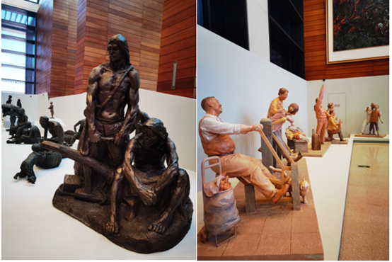 “百年巨变—雕塑作品展”展区陈列了反映普通群众生活场景的近百件雕塑作品,细致刻画了旧中国人民苦难深重、饱受欺凌的悲惨命运,生动描绘了新时代社会全面进步、人民共享小康的幸福生活。通过一件件作品,支部党员深刻体悟到,只有中国共产党才能肩负起争取民族独立、人民解放和实现国家富强、人民幸福的历史使命,只有中国共产党才能领导中国人民站起来、富起来、强起来,使中华民族走上实现伟大复兴的壮阔道路。