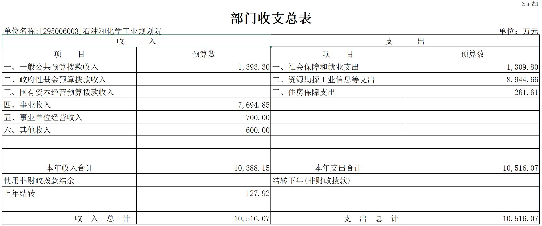 一、部门收支总表