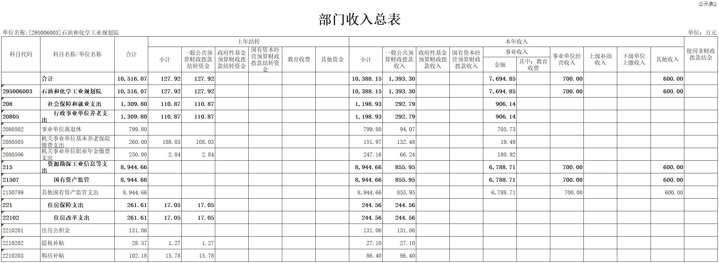 二、部门收入总表
