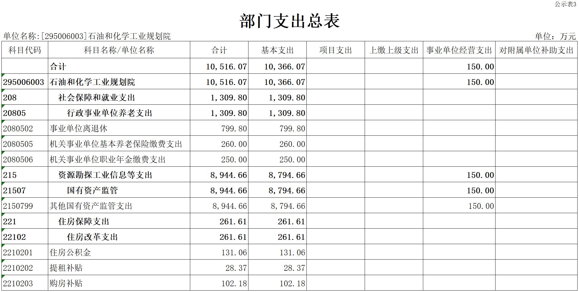三、部门支出总表