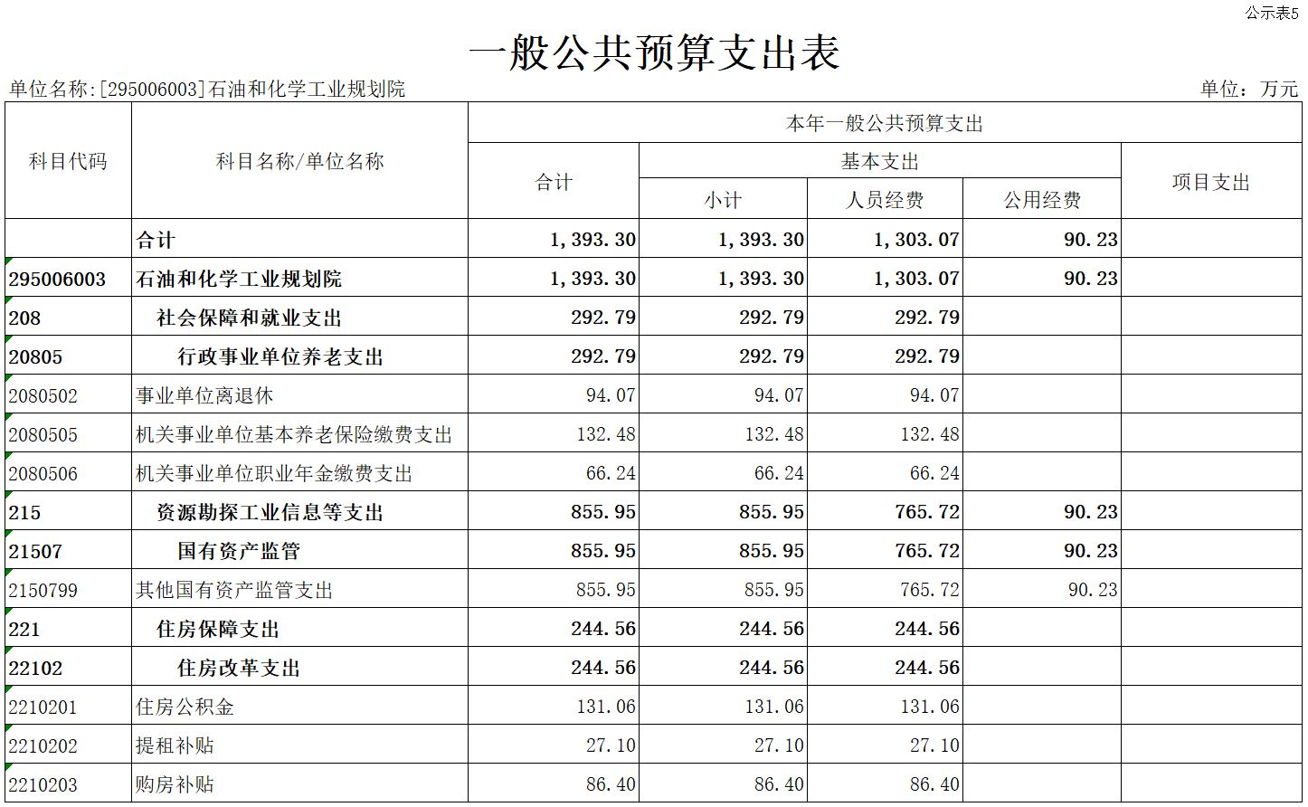 五、一般公共预算支出表