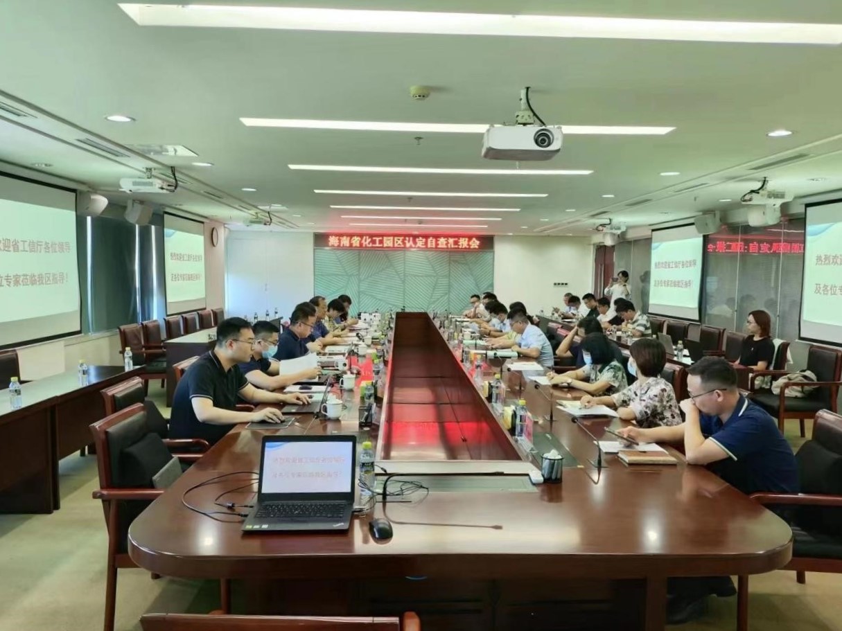 在认定自查现场汇报会上,海南省工信厅副厅长王钰介绍了认定工作的意义和要求,刘殿栋副院长讲解了化工园区认定的标准和现场勘查核实的主要内容,申报园区汇报了认定自查情况。