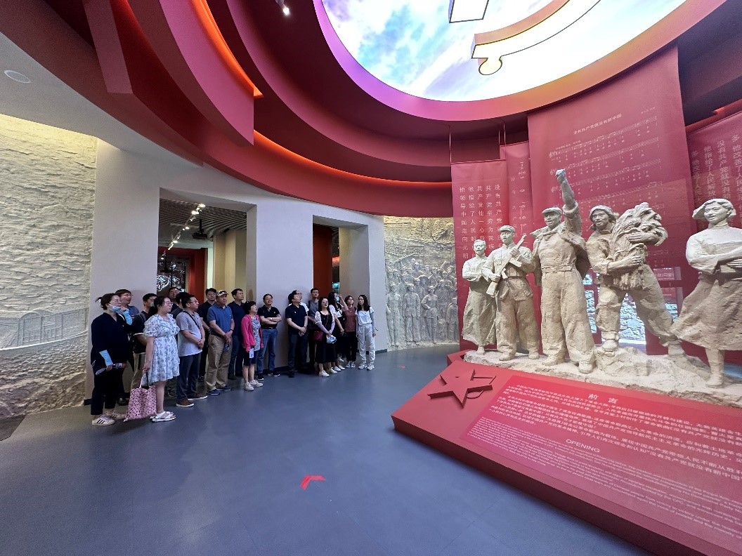 按照规划院党委主题教育工作安排,7月6日,院党委书记、院长李君发带领工程规划处党支部和财务处党支部赴全国爱国主义教育示范基地--没有共产党就没有新中国纪念馆,开展“人民的心声 历史的旋律”主题教育活动。纪念馆位于北京市房山区霞云岭乡堂上村,纪念馆分为序厅、四个主题部分、“不忘初心”部分和结束语。“党的创建和大革命洪流中的歌声”“土地革命风暴中的歌声”“为全民族抗战呐喊的歌声”“循着解放战争进程的歌声”四个主题部分,着重呈现了革命时期涌现的歌曲,串起革命历史和精神谱系。“不忘初心”部分,集中展示了新中国成立以来涌现的经典歌曲,力求让观众伴着歌声重温百年党史,生动阐释“没有共产党就没有新中国”的人民心声和历史旋律。纪念馆利用艺术品创作、大型投影、场景复原、音像展示等多种方式呈现主题歌曲15首、一般展示歌曲71首,以及84个党史故事、123首多媒体链接歌曲和资料,倾力营造“沉浸式”观展体验。