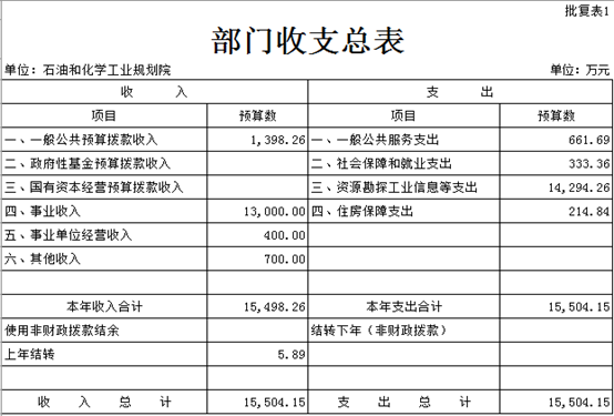 一、部门收支总表