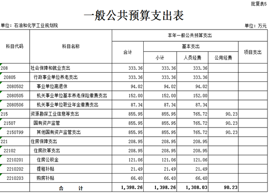 2024年一般公共预算支出1398.26万元,其中:行政事业单位养老支出333.26万元,包括:事业单位离退休94.02万元;机关事业单位基本养老保险缴费支出152万元;机关事业单位职业年金缴费支出87.34万元;资源勘探工业信息等支出855.95万元,为其他国有资产监管支出;住房保障支出208.95万元,包括:住房公积金121.06万元,提租补贴21.49万元,购房补贴66.4万元。