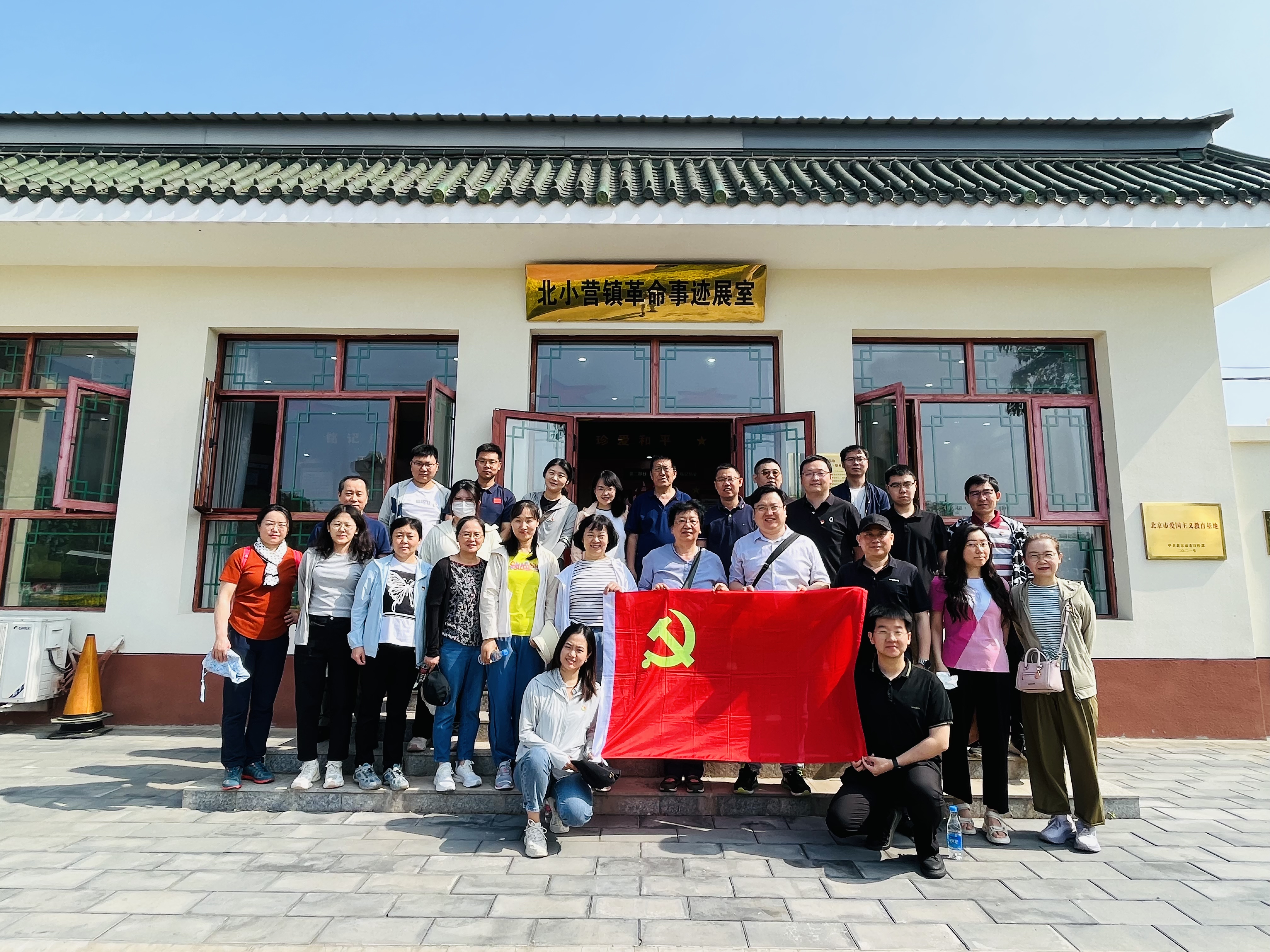 北小营镇革命教育基地位于北京市顺义区北小营镇,建有革命烈士纪念碑和烈士事迹展室。进入展室,映入眼帘的是一个火炬主题造型的陈设,正面带有“星·火”字样,“星”代表革命先烈,“火”代表革命事业,革命先烈为革命事业奋斗终身,传递火炬意味着红色基因代代传承。大家认真观看展室里播放的北小营镇革命史纪录片,深刻感悟革命先辈为理想信念抛头颅、洒热血的崇高品质与视死如归、舍己为国的浩然正气。同志们向烈士纪念碑三鞠躬,向革命先烈致敬,纷纷表示要以革命先辈为榜样,在工作中充分发挥党员先锋模范作用,做到不忘初心、牢记使命,主动聚焦“国之大者”,以广视野、大担当做好决策咨询研究。