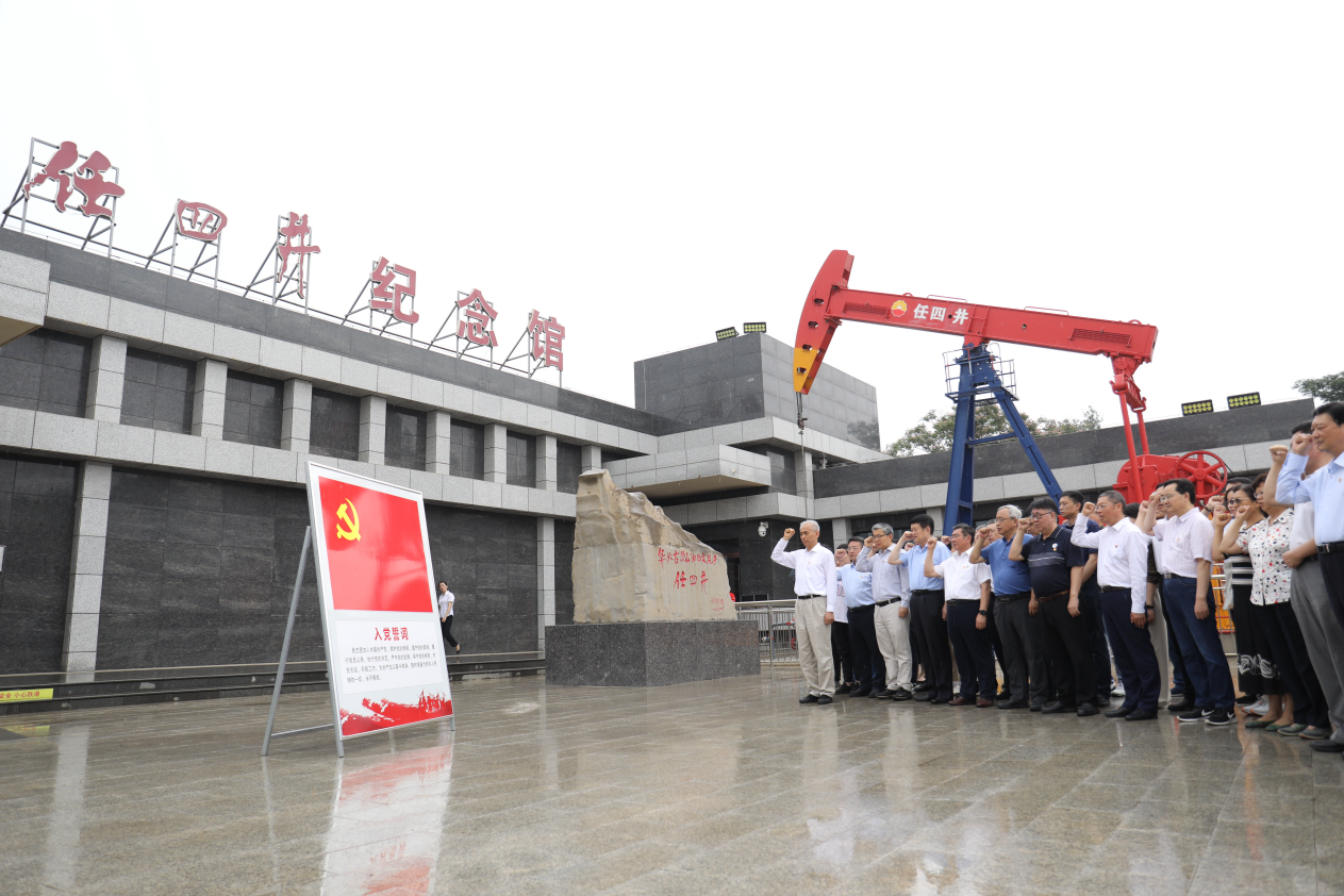 随后,大家参观了任四井纪念馆。通过一幅幅生动的影像图片、一本本详实的档案资料、一件件珍贵的文物实物,一个个催人奋进的故事,近距离感受任四井的开发建设历程和老一辈澳门新葡京 工人凝聚锻造的“探索创新、科学实践、乐观奋斗”的精神。在鲜红的党旗前,党委书记李云鹏同志带领大家冒雨庄严重温入党誓词,誓言铿锵,响彻任四井纪念馆广场,激荡在每位党员的心中。