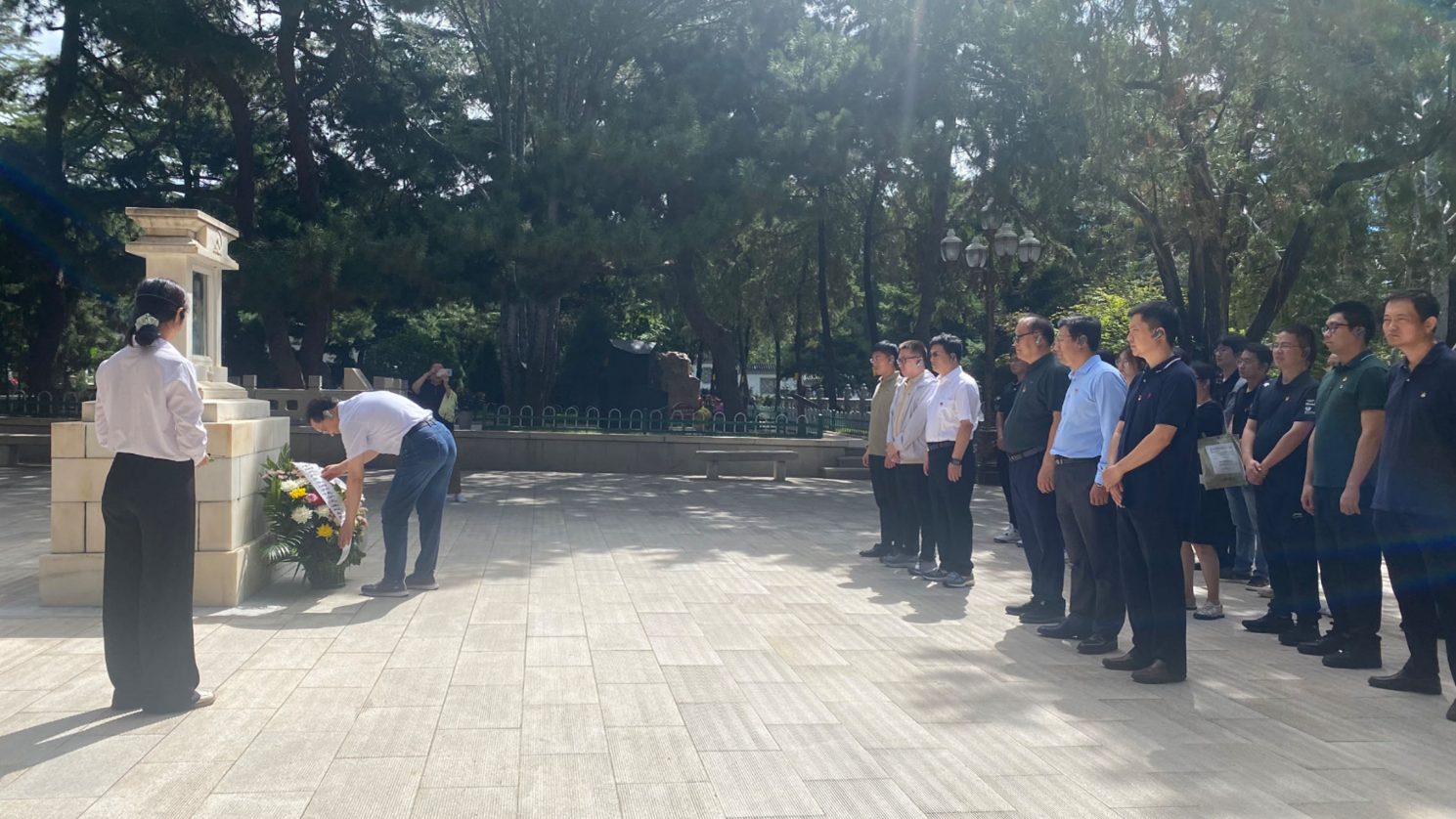 随后,同志们怀着缅怀和崇敬的心情瞻仰革命先烈墓地,学习老一辈无产阶级革命家为党和人民无私奉献、鞠躬尽瘁的红色事迹。跟着讲解员的脚步,同志们来到任弼时纪念碑前,讲解员详细介绍了任弼时同志的生平。任弼时同志被誉为“我们党的骆驼,中国人民的骆驼”,他为党和人民事业无私奉献、奋斗一生。同志们深深被任弼时同志的事迹打动,院党委向任弼时像敬献花篮,李君发书记整理缎带后,全体党员向任弼时墓碑行三鞠躬礼表达对先辈的无限崇敬。