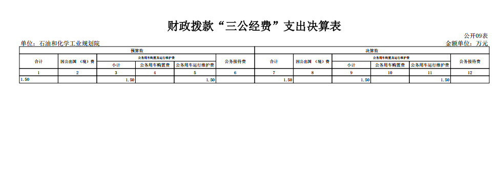 2024年决算实际拨款为:1.5万元,其中:因公出国费0.00万元、公务用车运行费1.5万元、公务接待费0.00万元。预决算拨款持平。