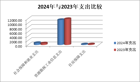 ⑵资源勘探工业信息等支出11450.17万元,用于单位开展专项业务活动和经营活动所需费用。包括:工资福利及个人家庭补助支出7288.20万元、商品和服务支出3787.74万元、资本性支出374.23等。2023年支出为11878.19万元,2024年较2023年支出减少428.02万元。其中:工资及福利支出增长24.87万元;商品和服务支出减少442.05万元,资本性支出减少10.84万元。