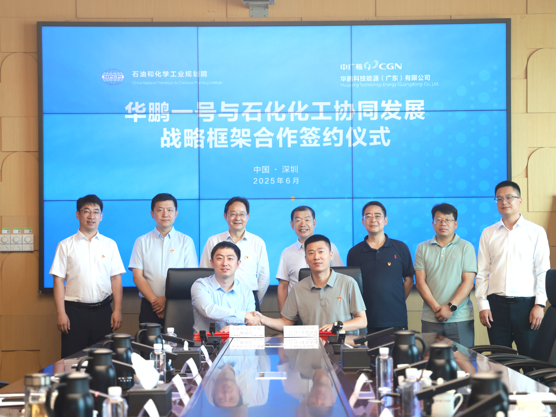 与中国广核集团华鹏科技能源(广东)有限公司在深圳大亚湾核电基地签署战略框架合作协议,携手推动核能与石化化工产业高质量协同发展。院党委书记、院长李君发,华鹏科技能源(广东)有限公司党委书记、执行董事、总经理马刚出席座谈交流,并共同见证签约。
