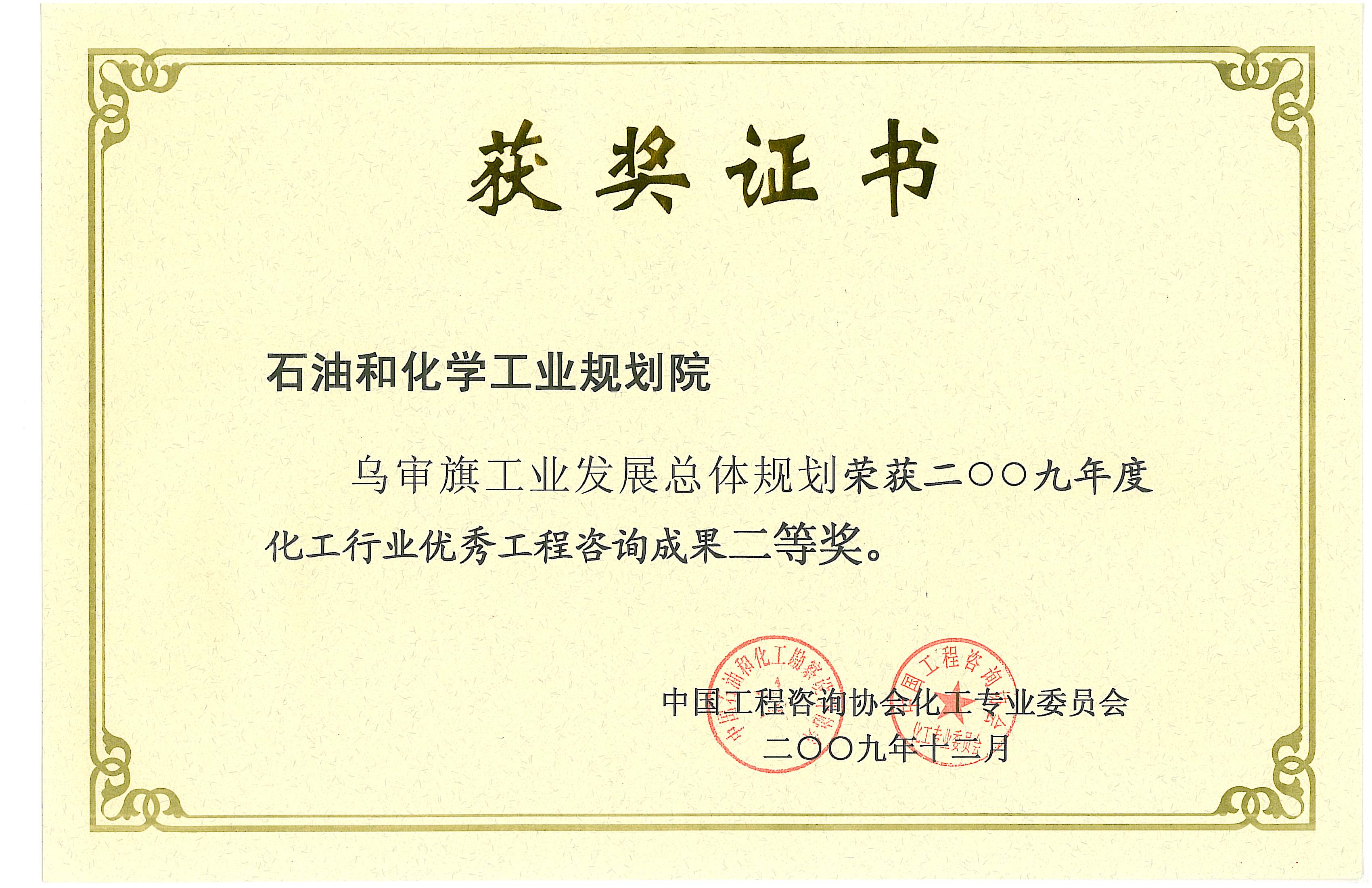 化工行业优秀工程咨询成果二等奖(乌审旗)