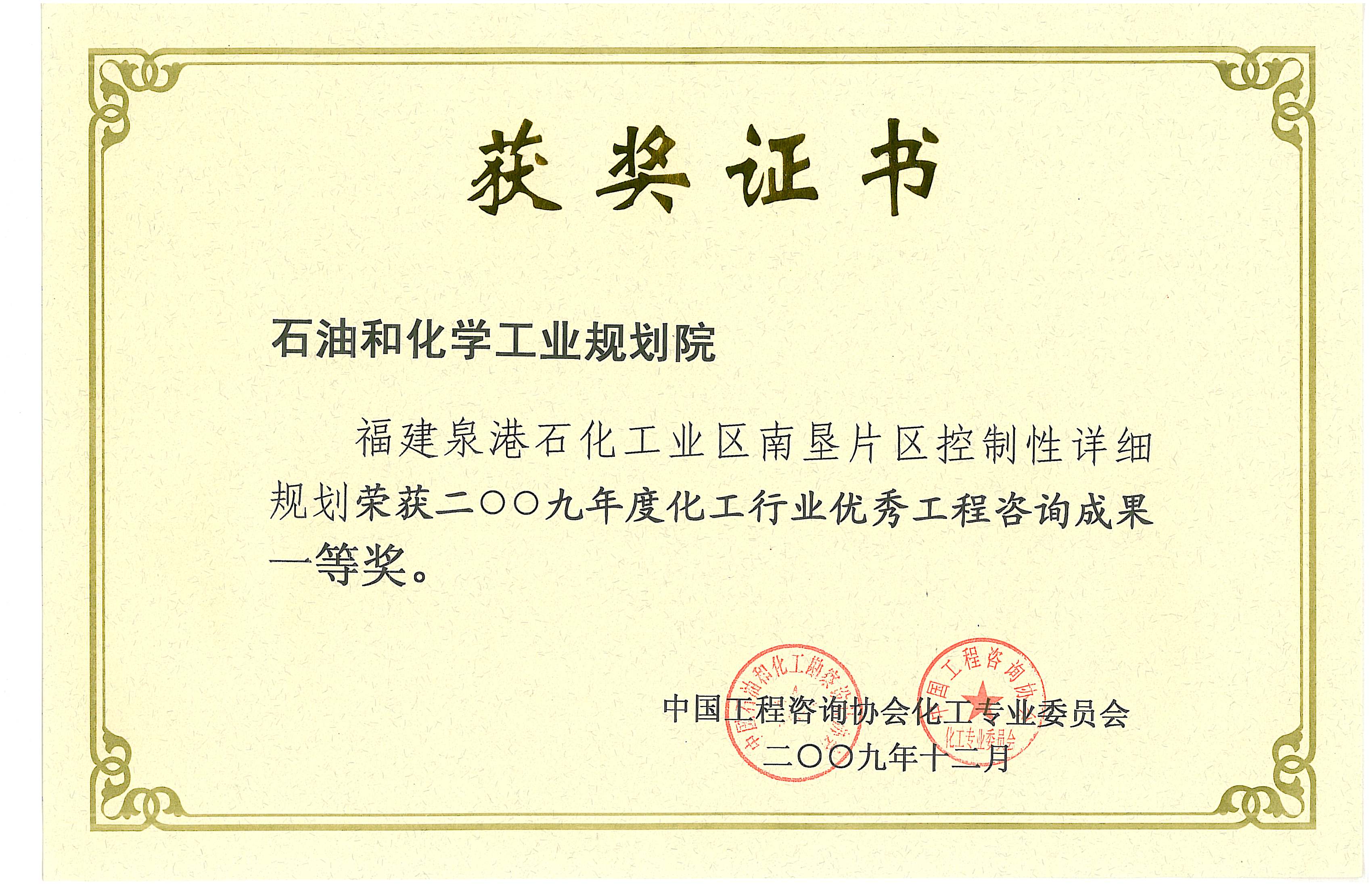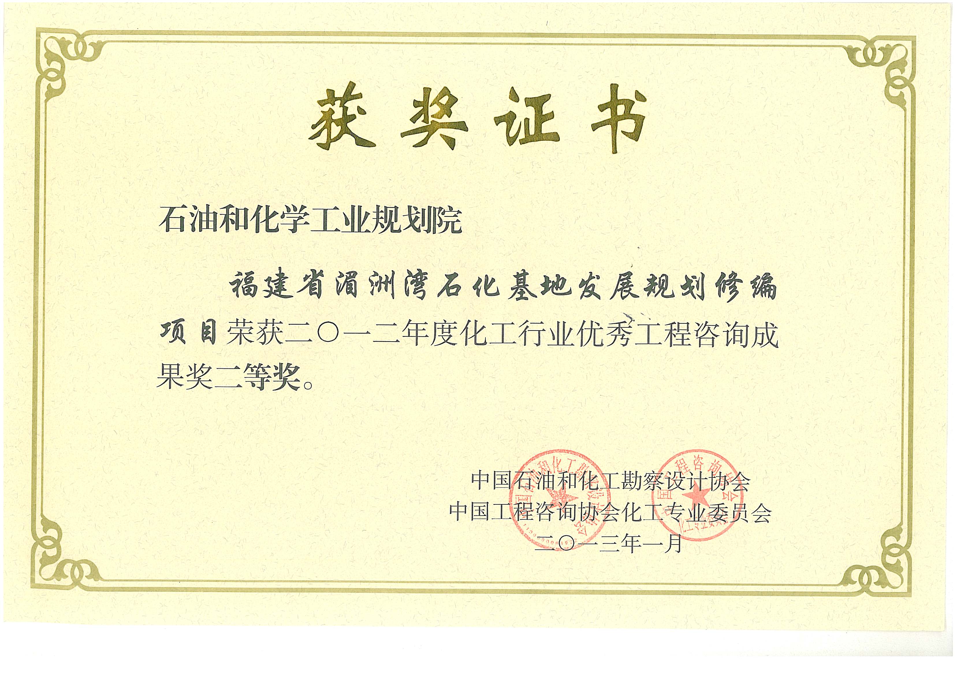 化工行业优秀工程咨询成果二等奖(湄洲湾)