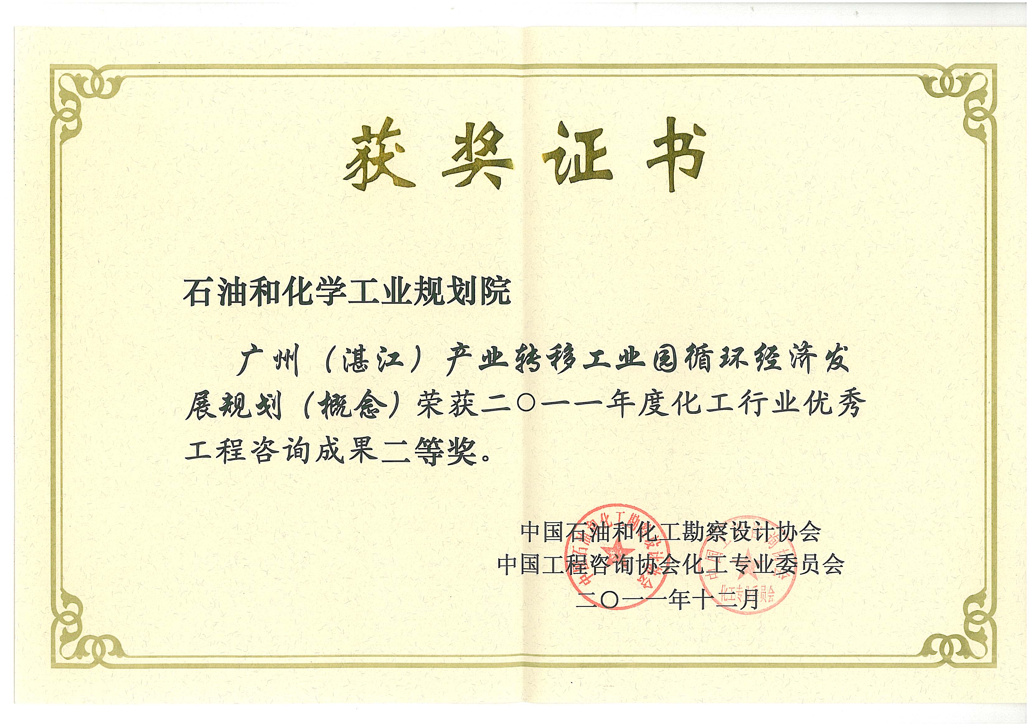 化工行业优秀工程咨询成果二等奖(湛江)