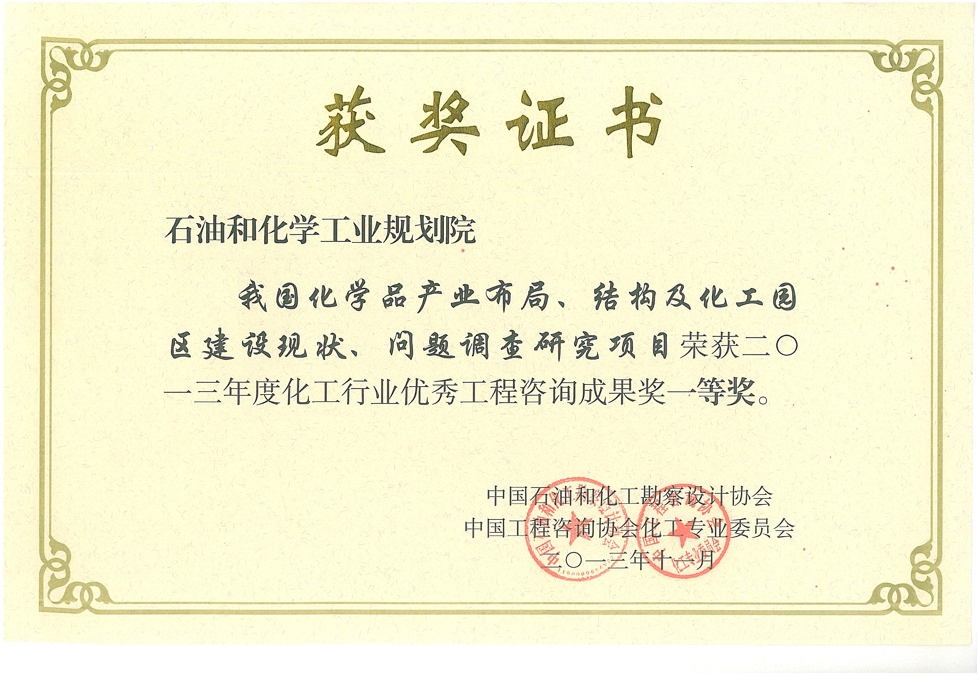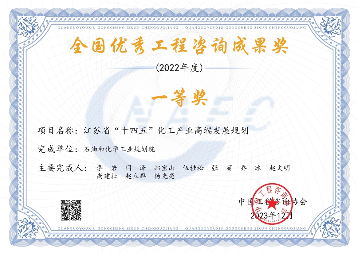 化工行业优秀工程咨询成果一等奖(化学品项目)