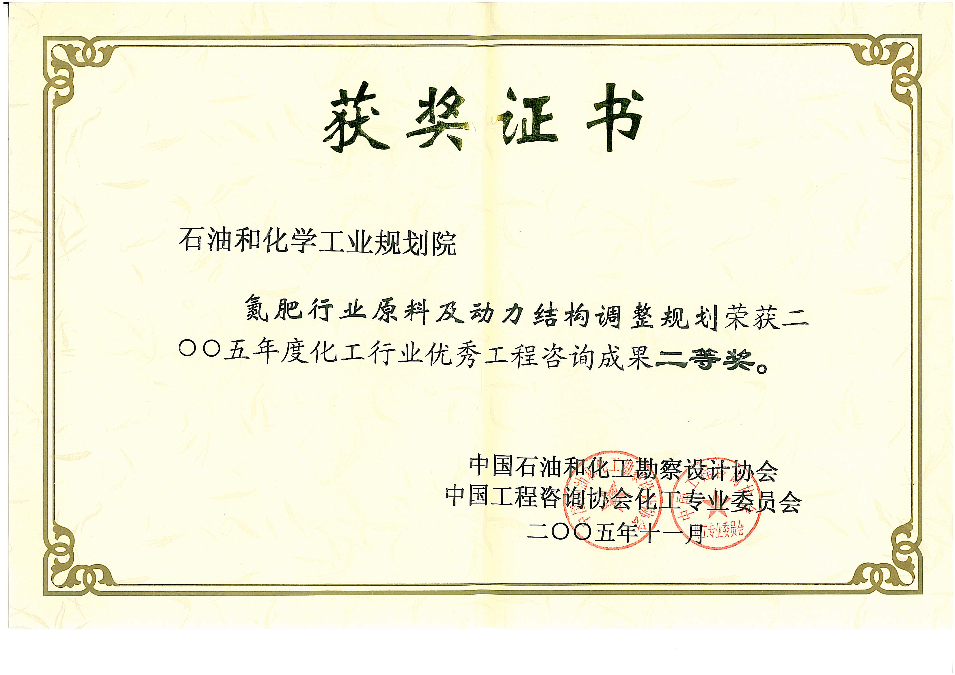 化工行业优秀工程咨询成果二等奖(氮肥专题)