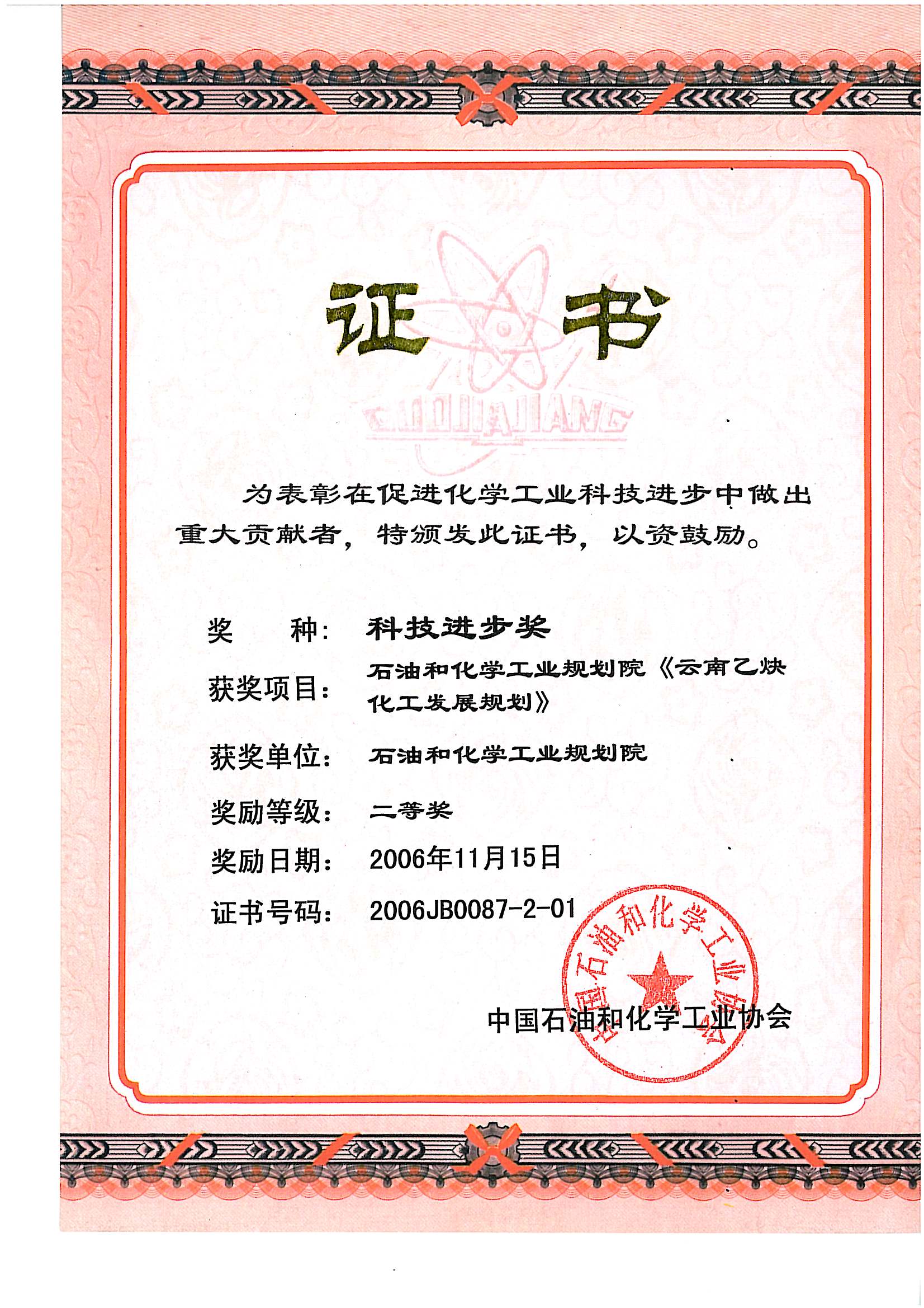 科技进步二等奖(云南乙炔)