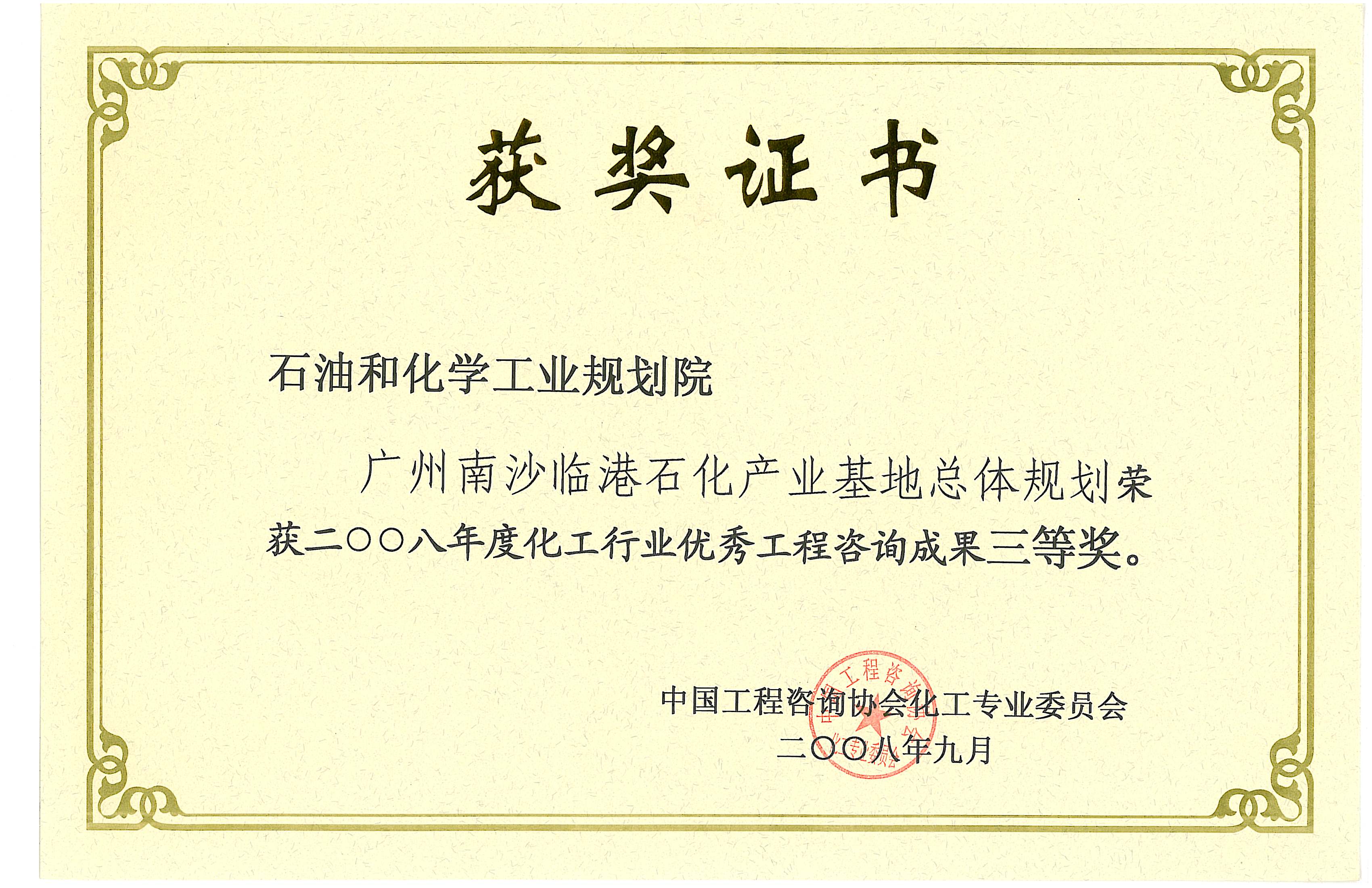 化工行业优秀工程咨询成果三等奖(南沙)