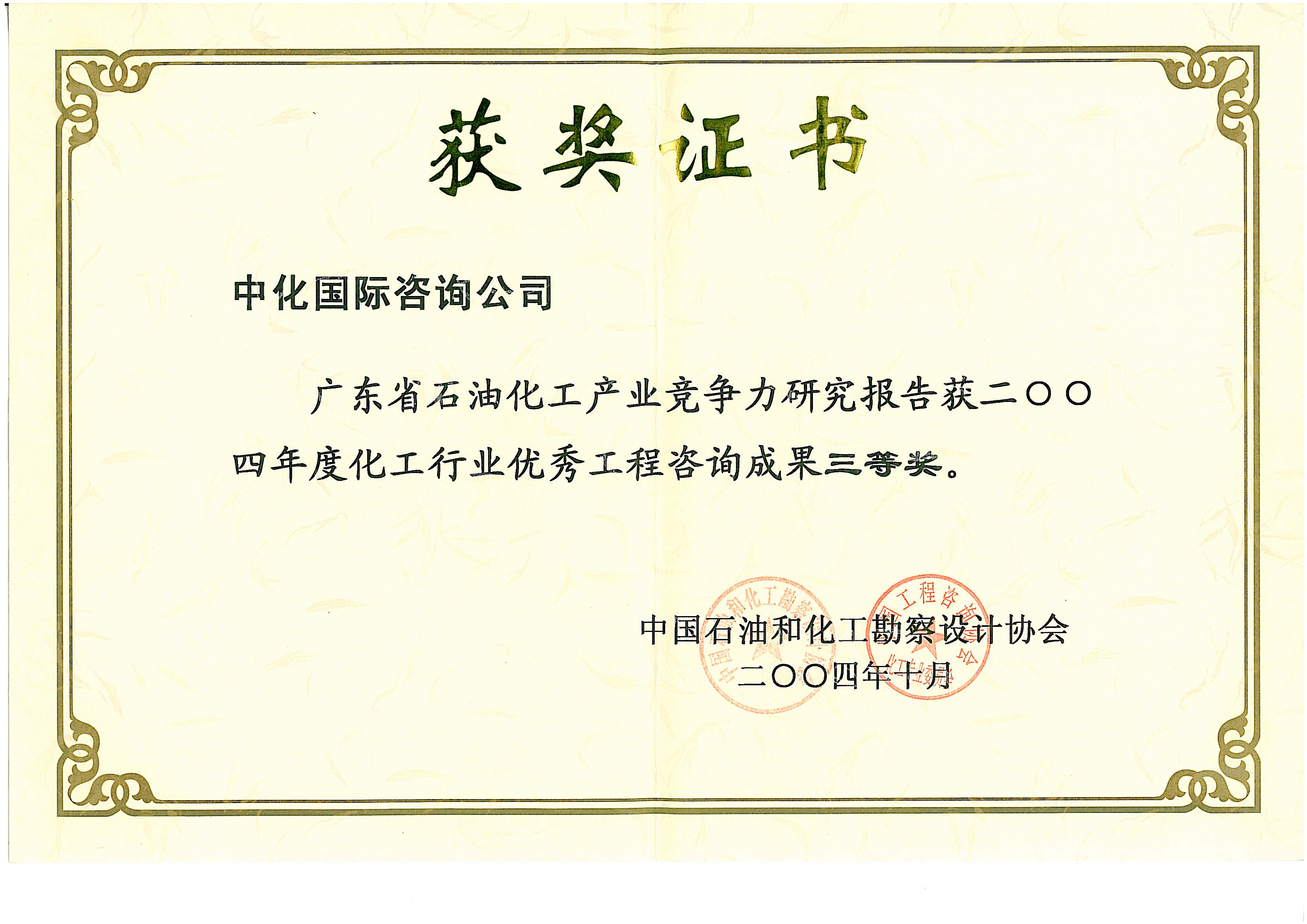 化工行业优秀工程咨询成果三等奖(广东竞争力专题)