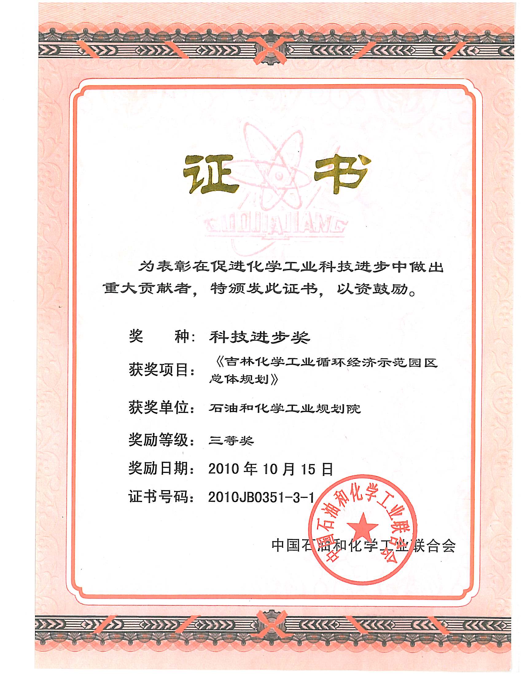 科技进步三等奖(吉林循环经济)