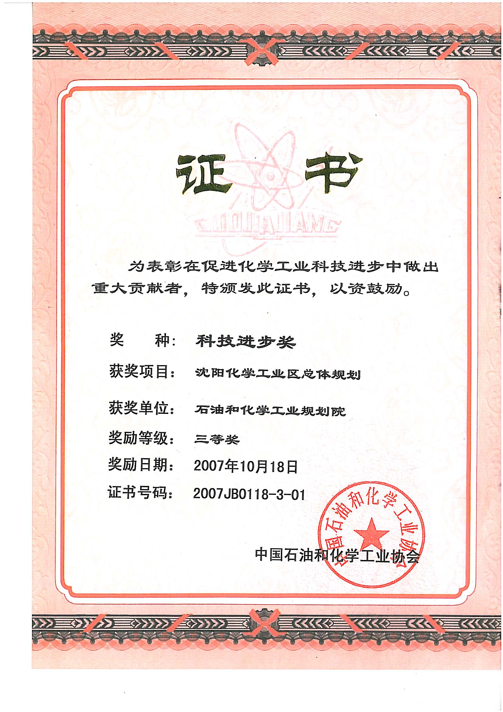 科技进步三等奖(沈阳规划)