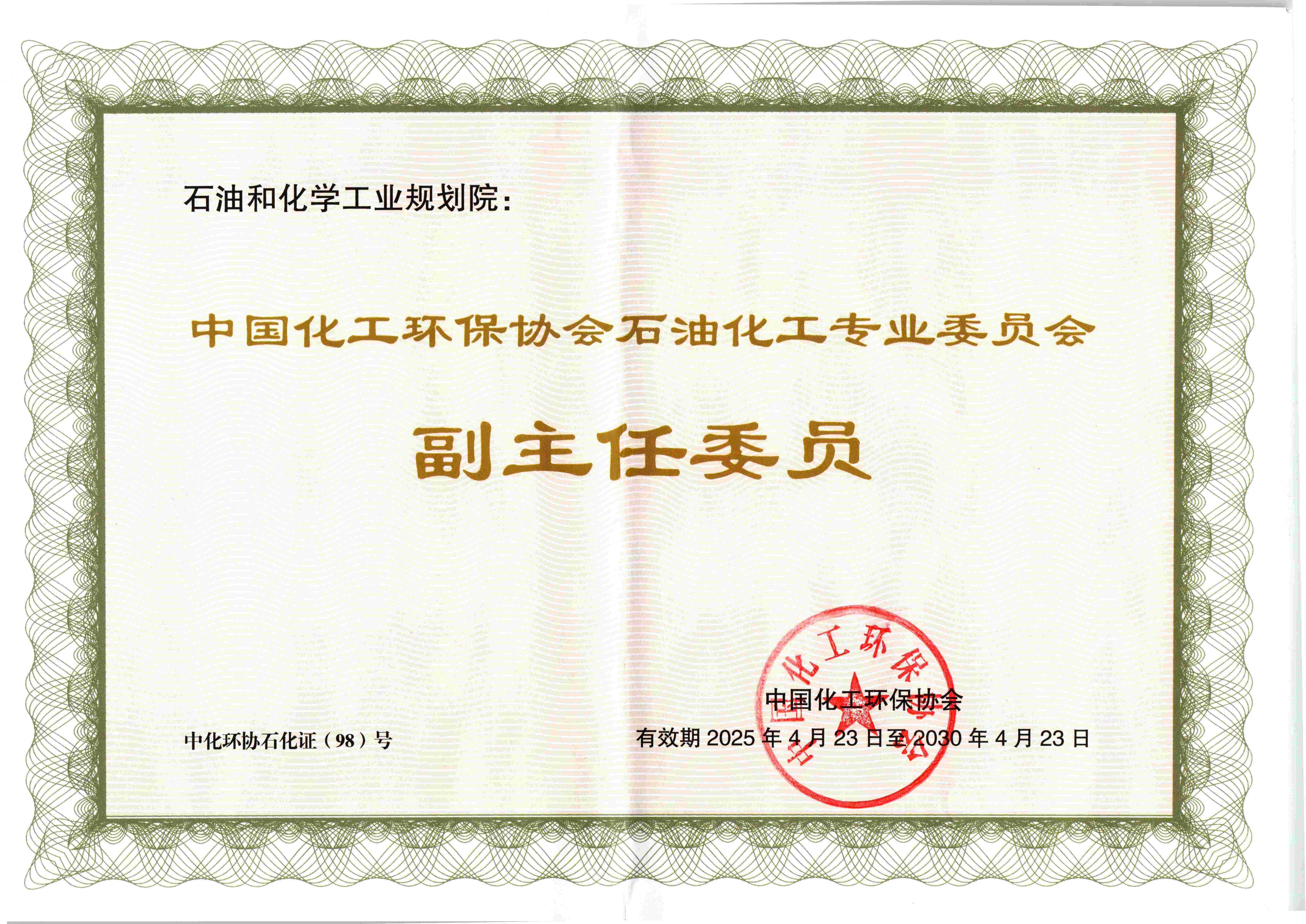 中国化工环保协会石化专委会副主任委员(2025-2030)
